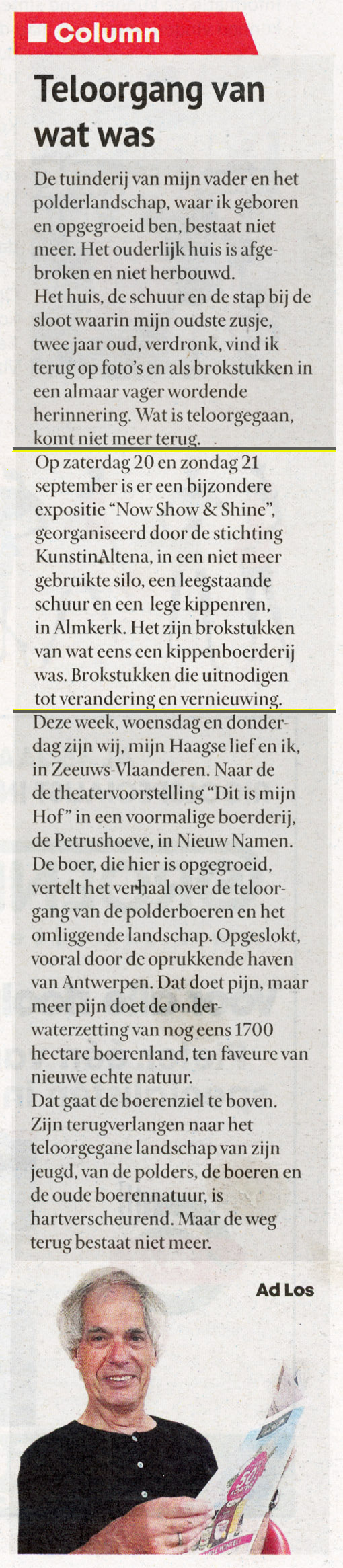 De voormalige pluimveehouderij als locatie voor juist deze expositie, biedt een mooie match met de kunstenaars. De niet meer gebruikte silo, de kippenren en de schuur als de uiteengevallen brokstukken van een verleden als kippenboerderij.