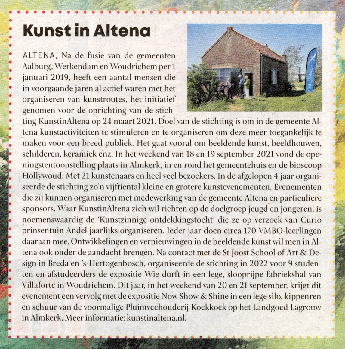 PersHet Kontakt, 18-9-2025Altena Nieuws, 18-9-2025 Brabants Dagblad, 23-03-2021Algemeen Dagblad, 22-03-2021Het Kontakt, 15-03-2021Altena Nieuws, 11-03-2021
